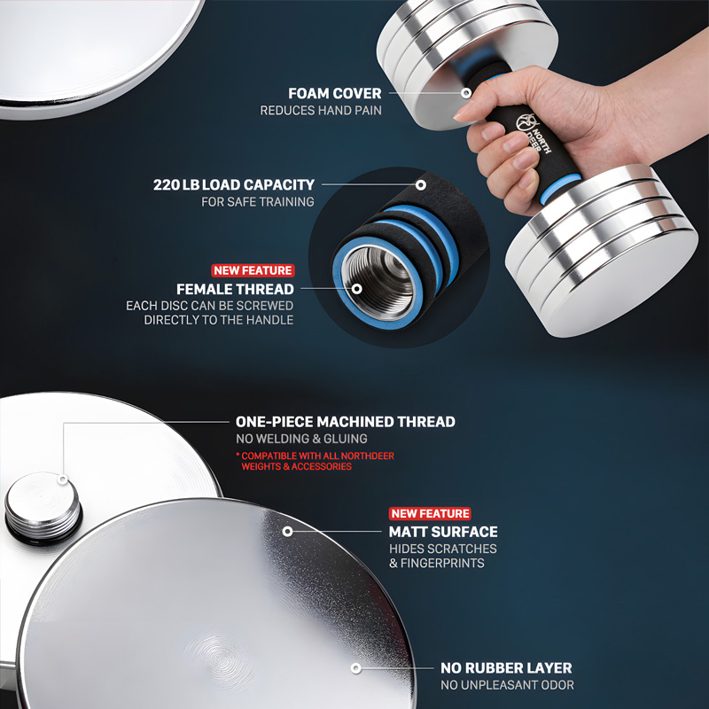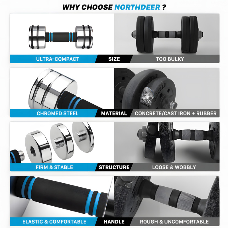 【Embedded Safety Locking System】Features a unique embedded locking design that completely eliminates the wobbling and noise common in traditional, nut-based dumbbells.