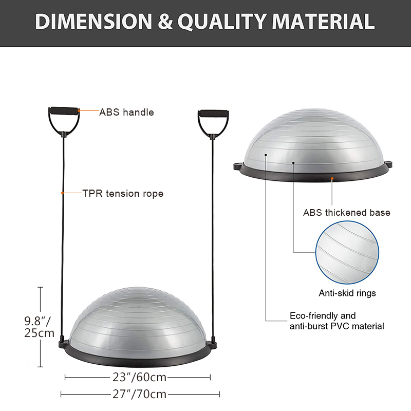 The half balance ball trainer is a creative and new version of balance ball trainer which features in its upgraded cloud textured matte surface, and made of environmental-friendly and non-toxic PVC without any worry of possible allergy. It is harmless to your health, durable and convenient to clean.
